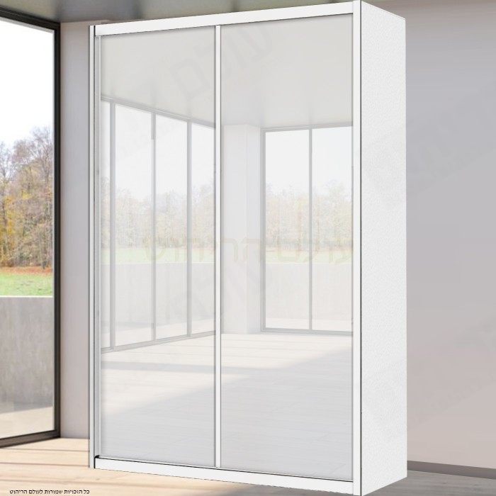 ארון הזזה 2 דלתות זכוכית לבנה ואלומיניום לבן מ 110 עד 180