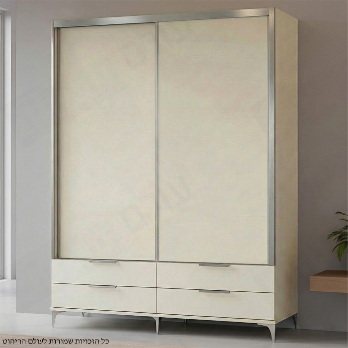 ארון הזזה 2 דלתות ו 4 מגירות על רגליים. מידות וצבעים בהתאמה אישית. לארון מסילות אלומיניום OPK טריקה שקטה