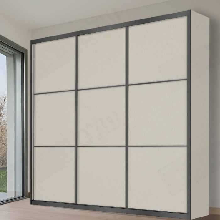 ארון הזזה 3 דלתות עם מסגרת אלומיניום בצבע שחור, עשוי מלמין ניתן לשדרוג לMDF וסנדוויץ, הארון עשוי בהקפדה על גימור ואיכות חומרים למוצר איכותי, טריקה שקטה. הצבעים ניתנים לבחירה בהתאמה אישית