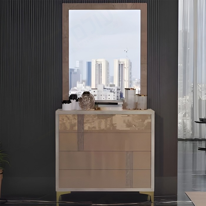 קומודה ומראה 4 מגירות חזיתות זכוכית דגם חליל