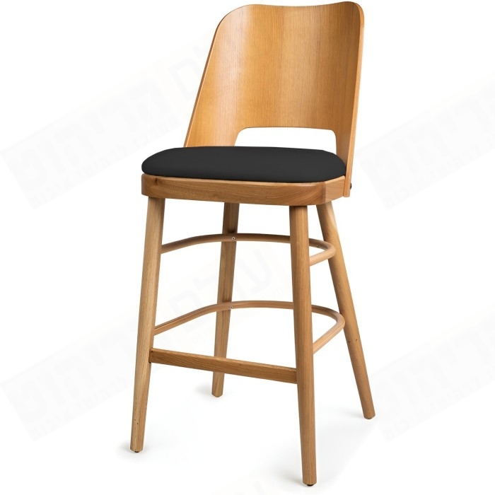 כסא בר מעץ אלון עם מושב מרופד דגם איתי