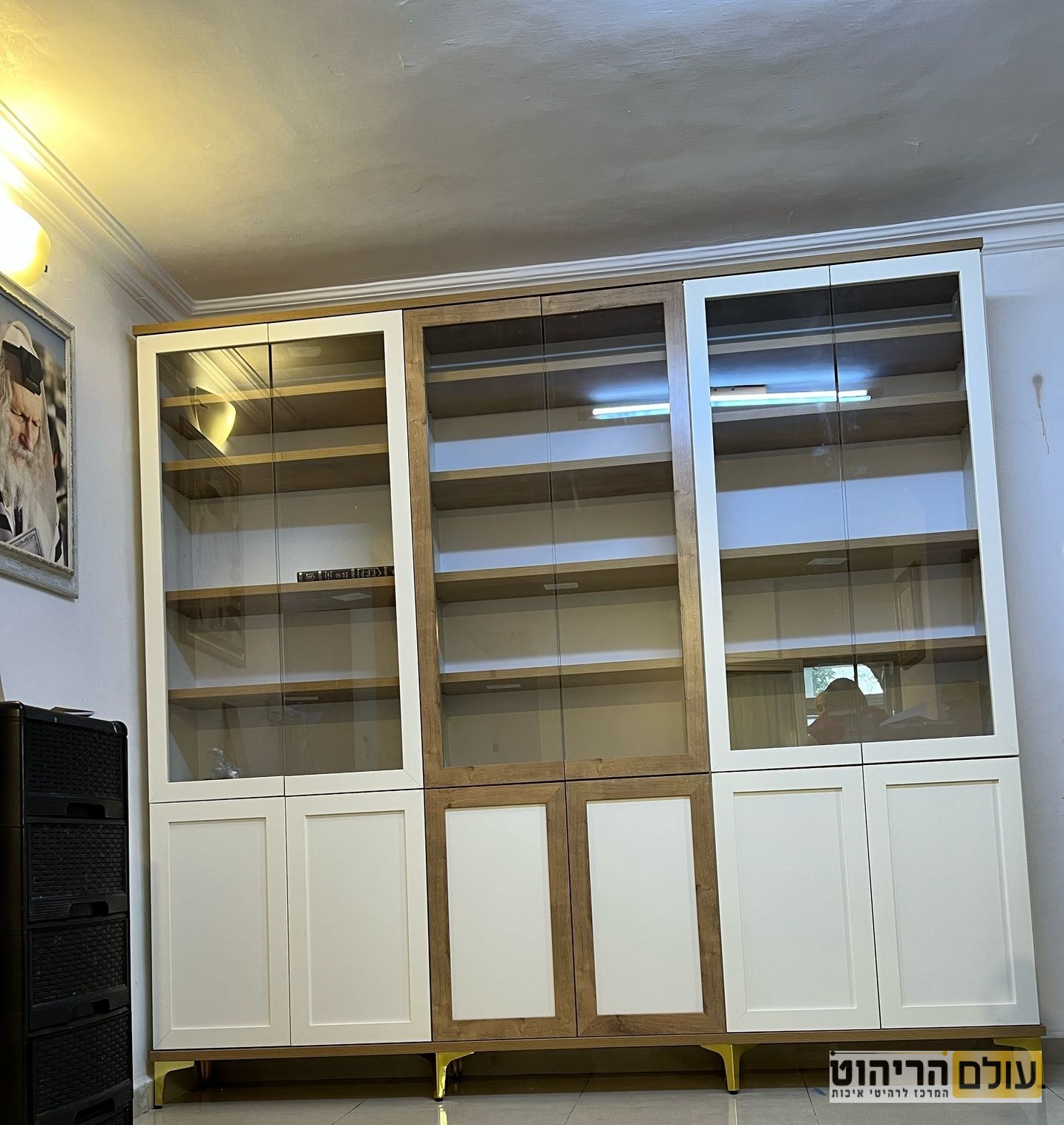 תגיות: ספריות קודש, אביחי, 4 דלתות, צבע שמנת, צבע שילוב 5550, רגל שפיץ זהב