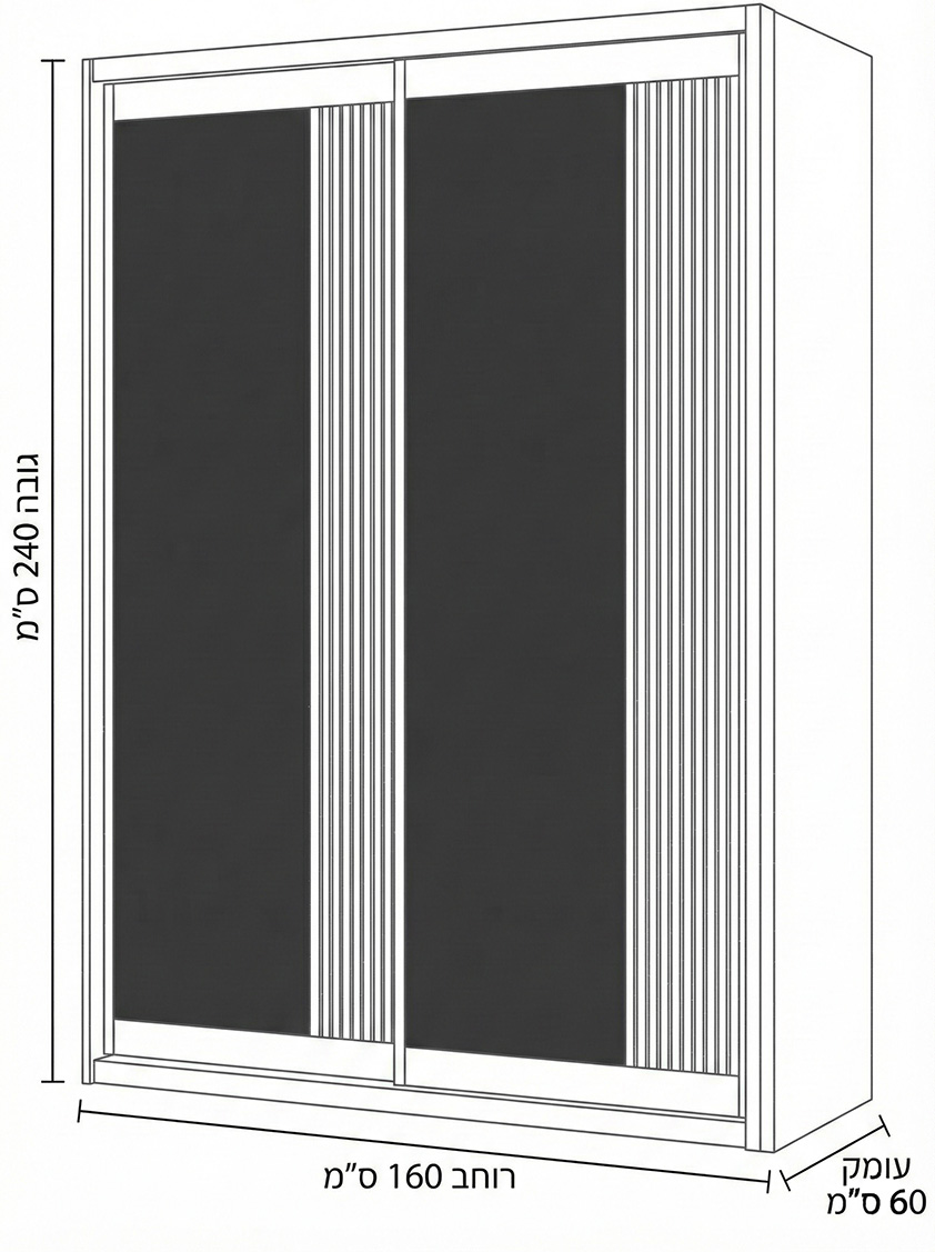 ארון הזזה 2 דלתות כולל מדפים ותליה. לארון דלתות מעוצבות עם מראה/ לקובל ופסים דקורטיבים. טריקה שקטה ופירזול OPK איכותי במיוחד. הארון בהתאמה אישית של מידות וצבעים לבחירתך